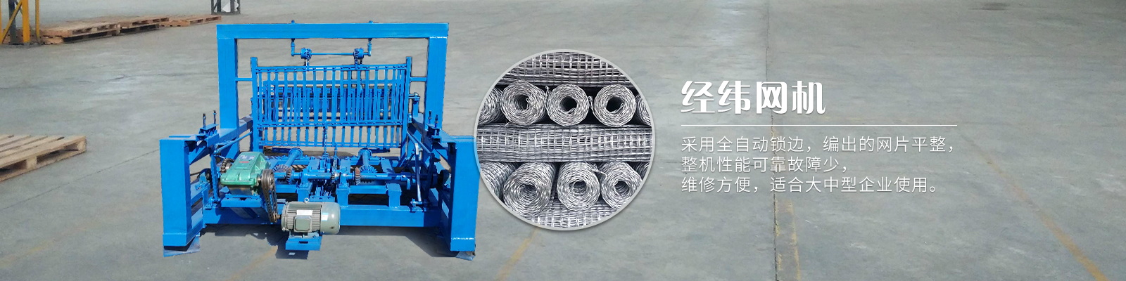 安平縣旭鴻絲網(wǎng)機械制造有限公司位于“絲網(wǎng)之鄉(xiāng)”——安平,地理位置優(yōu)越,交通便利。我公司主要產(chǎn)品有:全自動煤礦支護網(wǎng)編織機,半自動液壓軋花網(wǎng)機,軋花網(wǎng)專用排焊機,勾花網(wǎng)機,經(jīng)緯網(wǎng)機,溫室大棚卡浸塑設(shè)備,電焊網(wǎng)焊網(wǎng)機,草原網(wǎng)牛欄網(wǎng)機,刀片刺繩機,鋼筋調(diào)直機,拉絲機等。我公司員工都有多年的生產(chǎn)經(jīng)驗,生產(chǎn)技術(shù)精湛,產(chǎn)品設(shè)計合理,售后服務(wù)好。產(chǎn)品銷往各地,深受用戶好評。從建公司以來我們堅持以“品質(zhì)成就品牌,誠信鑄就未來”為經(jīng)營理念,認真為客戶做好每一個產(chǎn)品,客戶對產(chǎn)品的滿意就是我們的欣慰。我們的每一個產(chǎn)品從開發(fā)、設(shè)計、制作等每個步驟都有人員審查,爭取一次做到精制,從而保證產(chǎn)品的質(zhì)量......